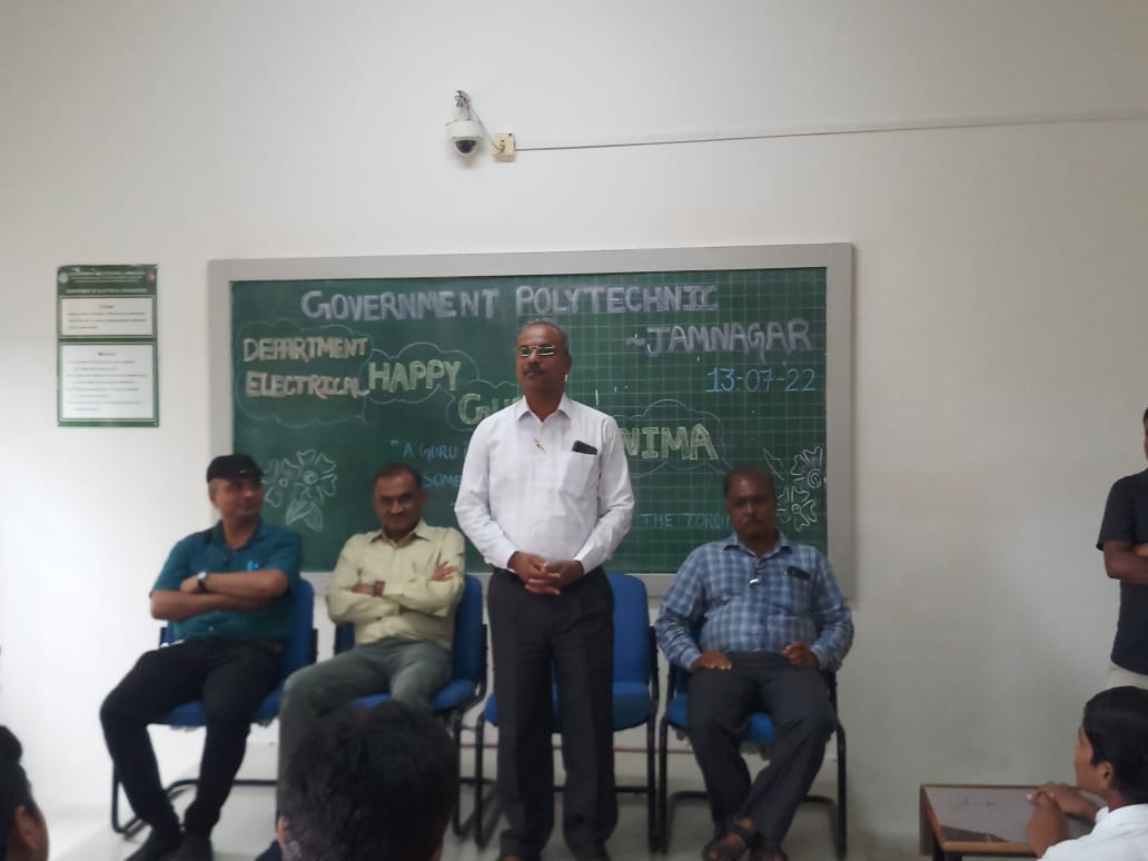 On July 13, 2022, the Government Polytechnic (GP) in Jamnagar came alive with reverence and gratitude as it hosted a heartfelt Guru Purnima celebration, honoring the timeless tradition of paying tribute to teachers and mentors. The event brought together students, faculty, and staff in a warm gathering, featuring soulful performances, speeches, and a ceremonial felicitation of the institute’s educators for their unwavering dedication. The campus resonated with an atmosphere of respect and appreciation, adorned with floral decorations and banners reflecting the theme of guru-shishya parampara (teacher-student tradition). This celebration not only strengthened the bond between students and their guides but also left an inspiring mark on the GP Jamnagar community, embodying the essence of gratitude and wisdom.