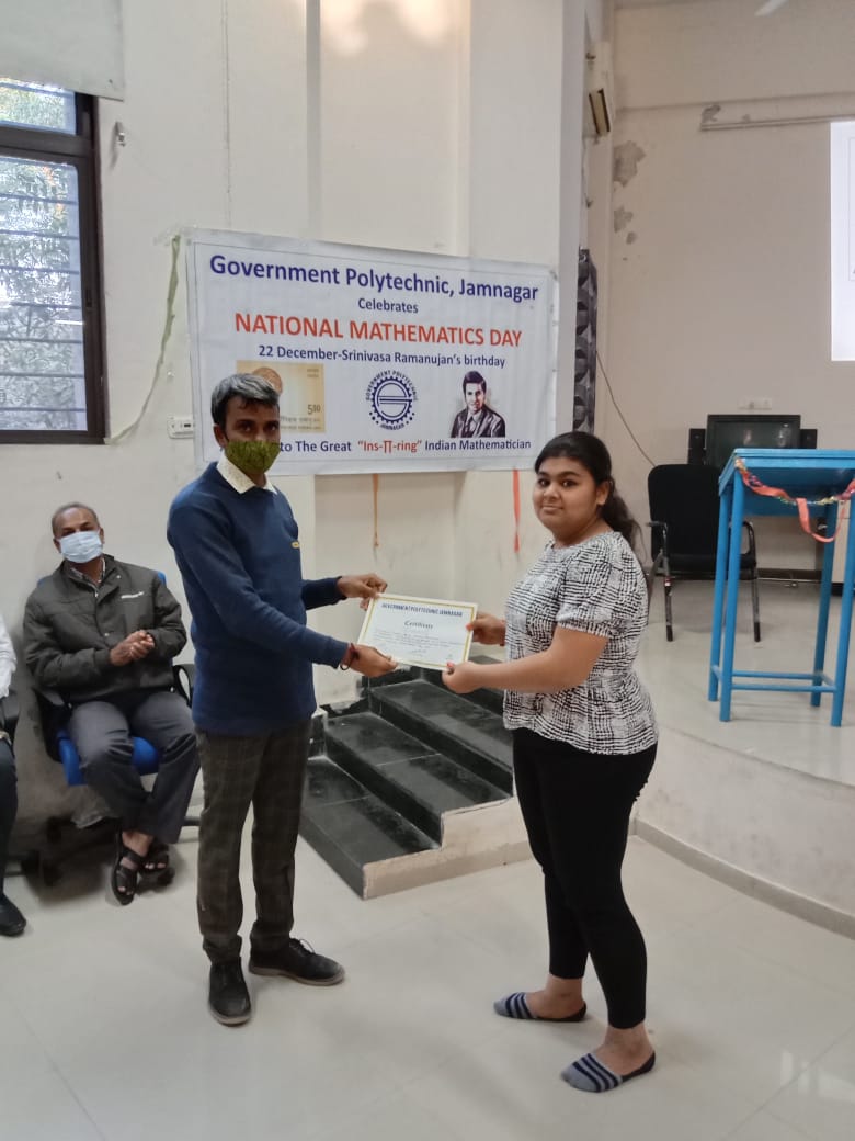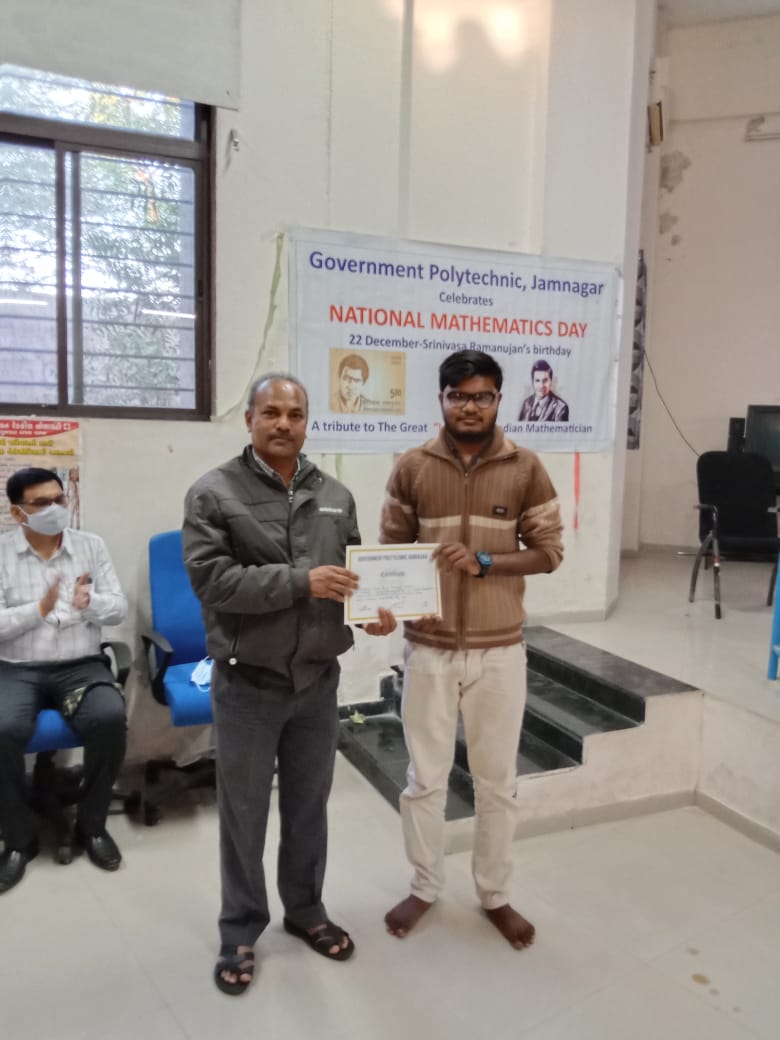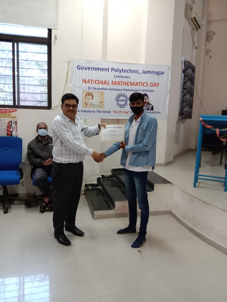 In this celebration an webinar was taken by Dr. Nirav H. Shah (Lect. Mathematics, G.P. Jamnagar) on 21/12/2021. And on 22/12/2021 Poster Presentation competition and Oral Presentation competition were organized for students as a part of celebration.