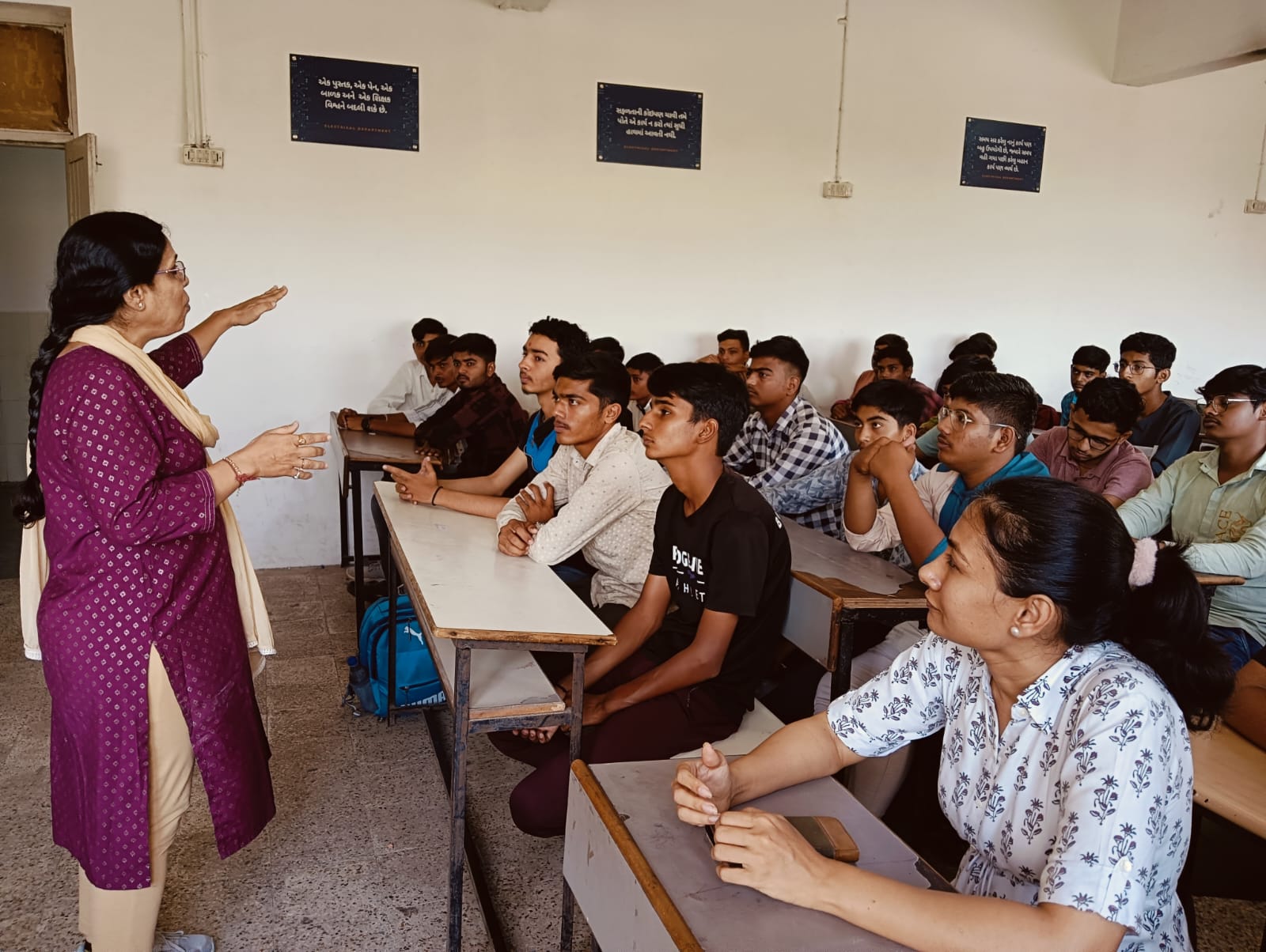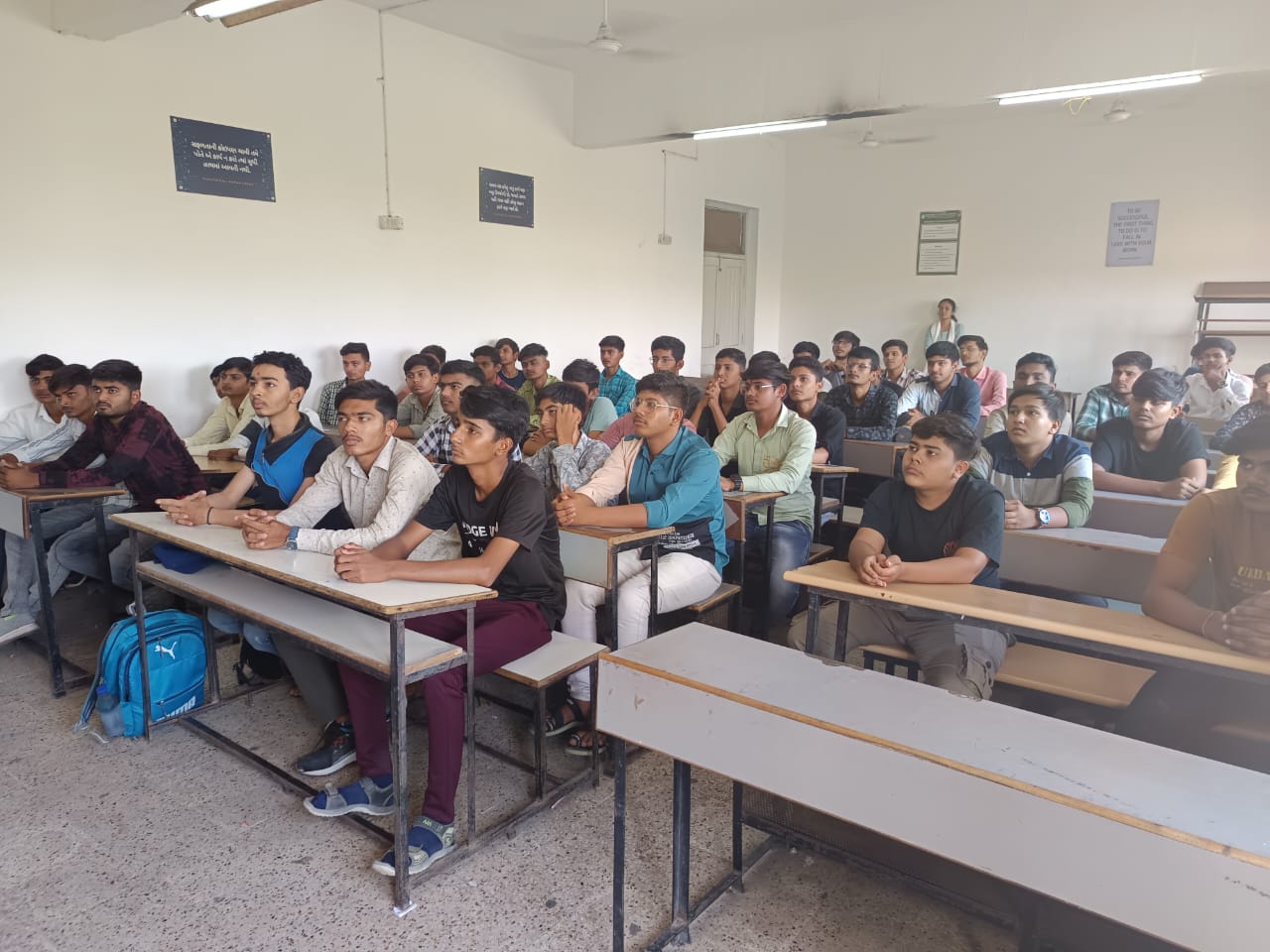 Dr. Nirav H. Shah has started the event and motivated students for reading. Dr. K. P. Raichura has explained the history and theme of the day and narrated the benefits and Joy of reading. Dr. V. S. Tejwani has motivated students to read, think and act and become a sensible citizens and engineer. Dr. U. M. Joshi suggested some good books, she narrated her reading journey and how reading can be a tool for life long learning. Dr. H. J. Parekh has informed students about the facility about central library and recent arrivals.