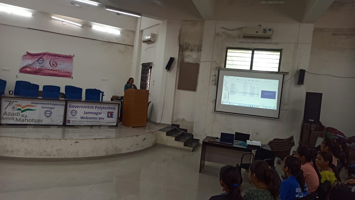 On the 20th of August 2024, a seminar on Student Counseling and Guidance was successfully organized by the Women Development Cell at Government Polytechnic Jamnagar. The event was aimed at providing girls students with essential career guidance and an overview of the various career options available to them as they embark on their academic journey. The seminar was designed to offer clarity and direction to the new students, helping them understand the diverse career paths open to them. The session covered critical aspects such as: