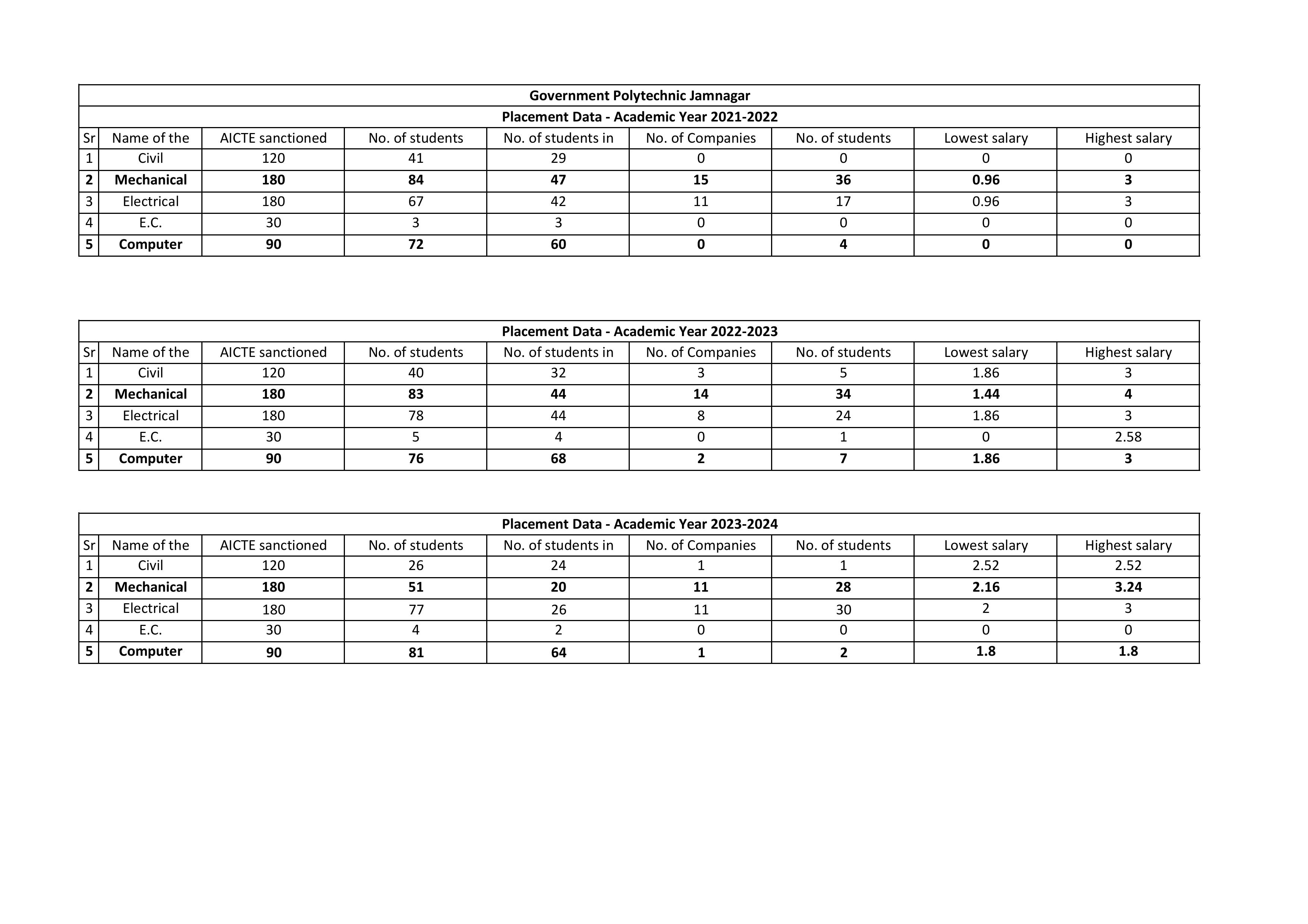 CAMPUS PLACEMENT DATA 2021 TO 2024